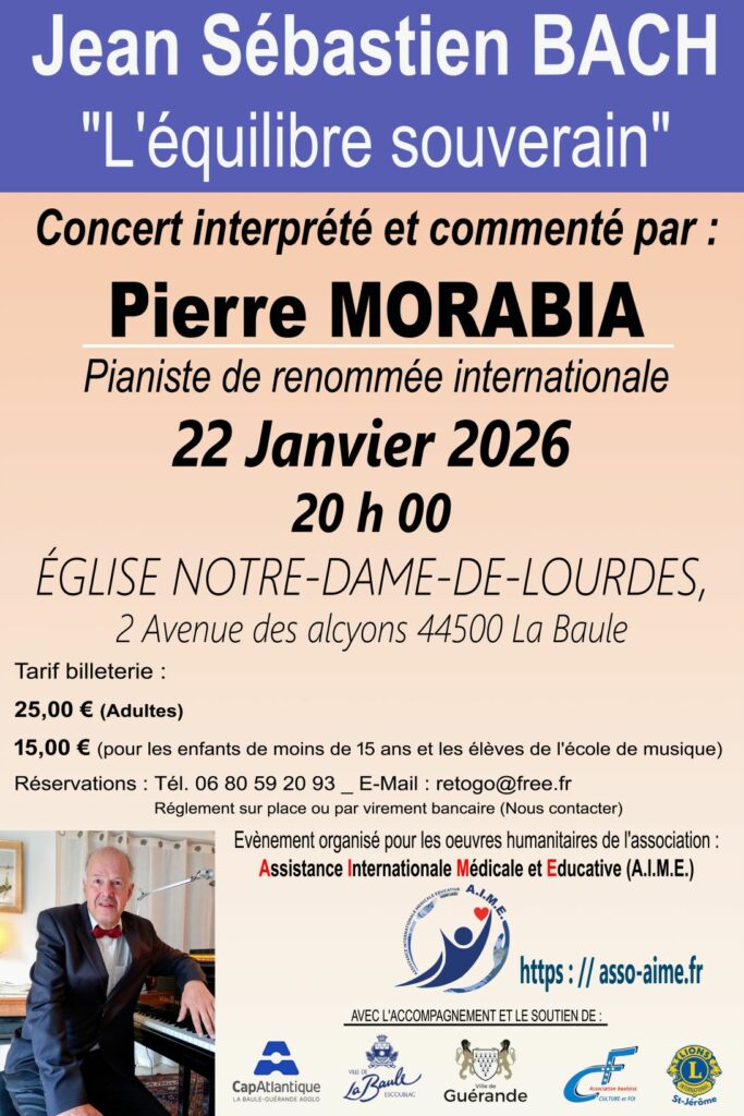 Un concert de musique classique consacré à l’œuvre de Jean-Sébastien Bach, intitulé « L’équilibre souverain », se tiendra à La Baule le jeudi 22 janvier 2026 à 20 h 00.