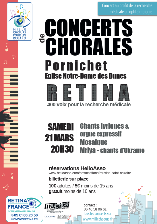 Dans le cadre de l’opération nationale Mille Chœurs pour un Regard, un grand concert de chorales est organisé au profit de l’association Retina France.